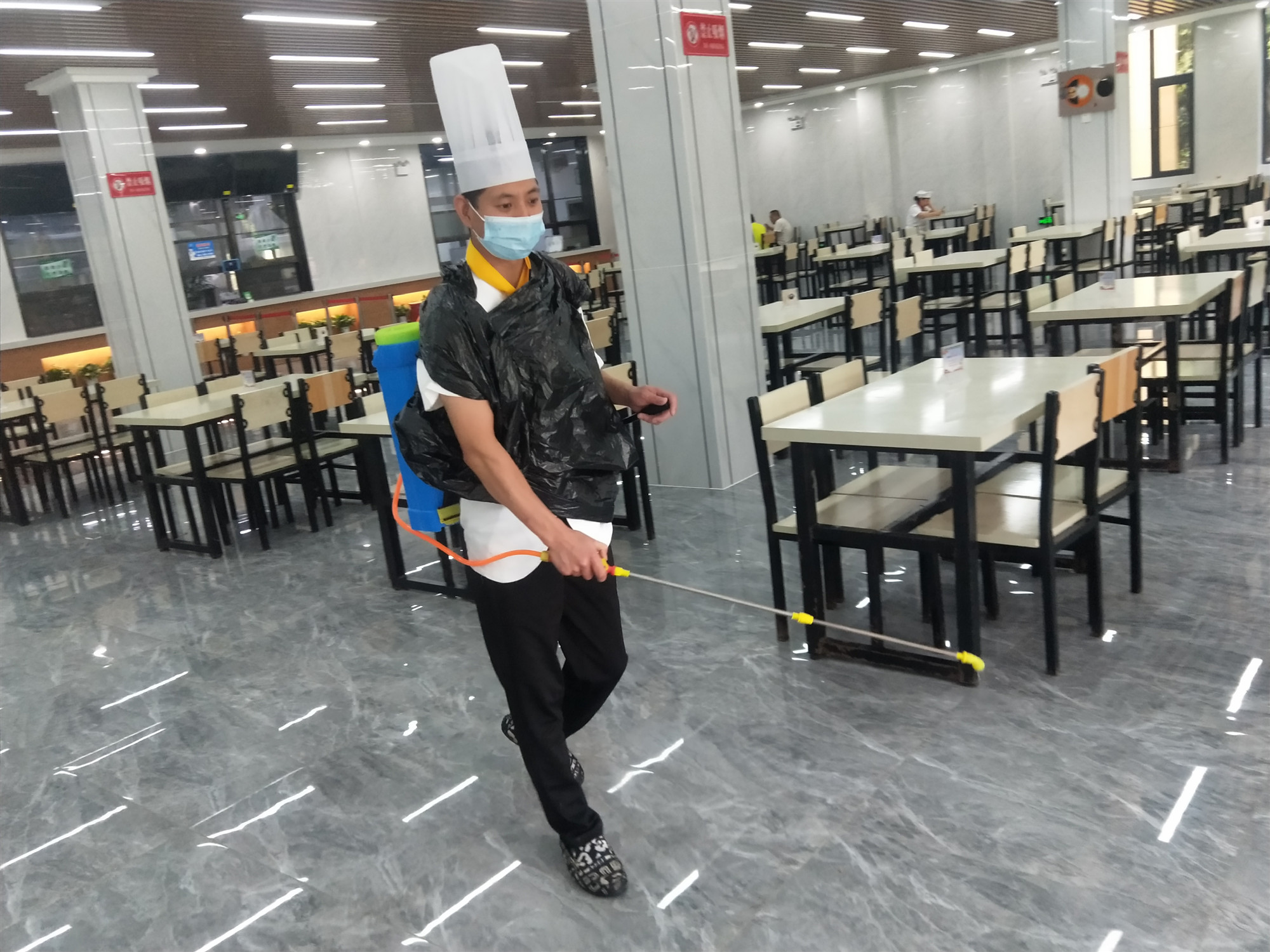 加強(qiáng)消毒管理,做好環(huán)境消殺。嚴(yán)格執(zhí)行公司疫情防控措施,就餐時(shí)間安排專人值守,維持秩序,督促就餐職工遵守防疫規(guī)定。同時(shí),加強(qiáng)衛(wèi)生保潔,對(duì)就餐桌椅和餐具嚴(yán)格消毒,并安排工作人員每天定時(shí)對(duì)餐廳及周邊環(huán)境進(jìn)行消殺。